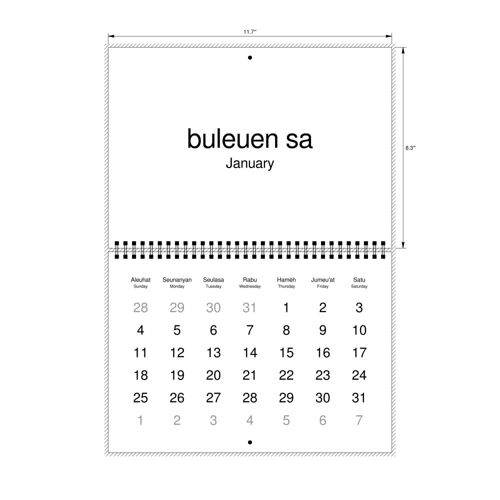 2026 Wall Calendar, Acehnese-Labeled, Monday-Start Layout, Wire-Bound, 11.7 x 8.3 in (29.7 x 21.0 cm)