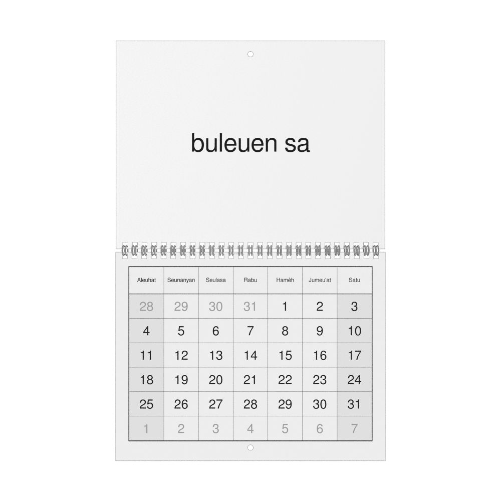 - Acehnese heritage speakers and cultural connectors - For individuals seeking to maintain a connection to their history, ancestral roots, or the culture associated with the Acehnese language, the calendar serves as a daily cultural marker. Use it in your home, office, library, or museum as a link to linguistic and cultural identity that integrates Acehnese into your everyday life. Familiar language script and naming conventions may also provide a sense of home in a foreign environment.