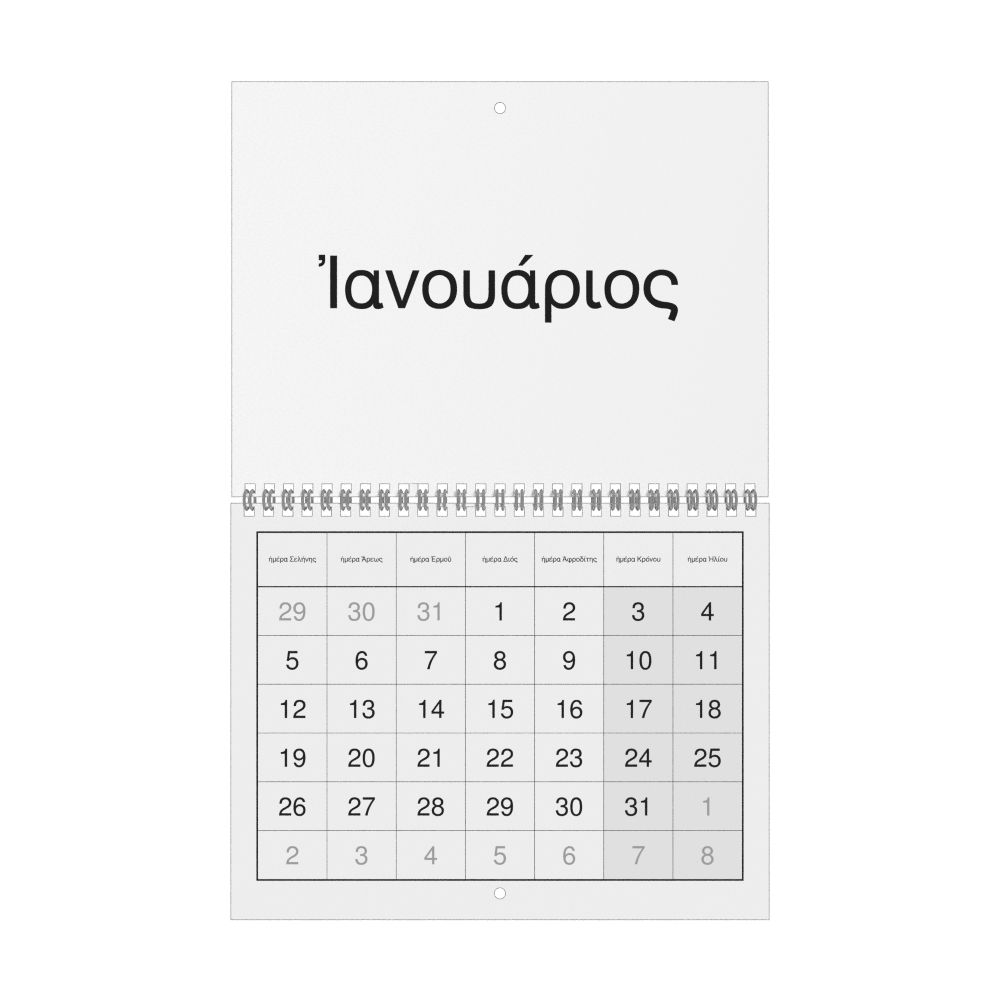 2026 Wall Calendar, Ancient Greek-Labeled, Monday-Start Layout, Wire-Bound, 11 x 8.5 in (27.9 x 21.6 cm)