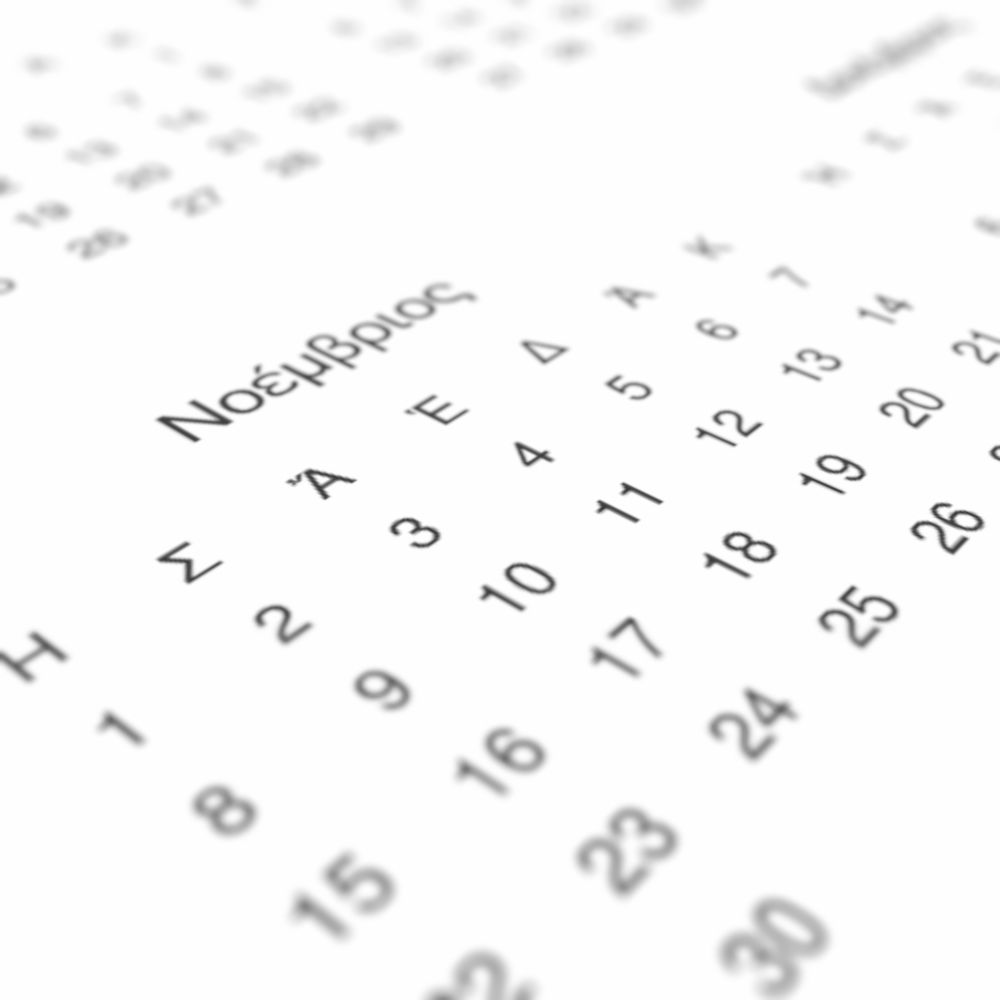 While the text features Ancient Greek (a historical language), the calendar format adheres to the standard date system. This ensures that the utility remains universal.