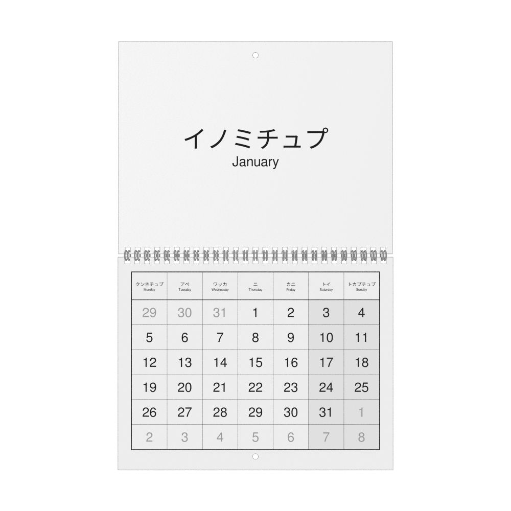 2026 Wall CalendarAinu/English-Labeled, Monday-Start Layout, Wire-Bound, 11 x 8.5 in (27.9 x 21.6 cm)