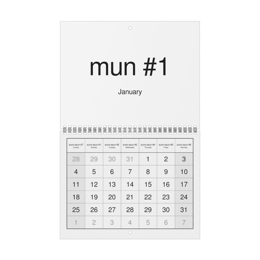 2026 Wall CalendarToki Pona/English-Labeled, Sunday-Start Layout, Wire-Bound, 11 x 8.5 in (27.9 x 21.6 cm)