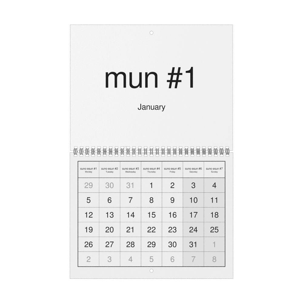 2026 Wall Calendar, Toki Pona-Labeled, Monday-Start Layout, Wire-Bound, 11 x 8.5 in (27.9 x 21.6 cm)