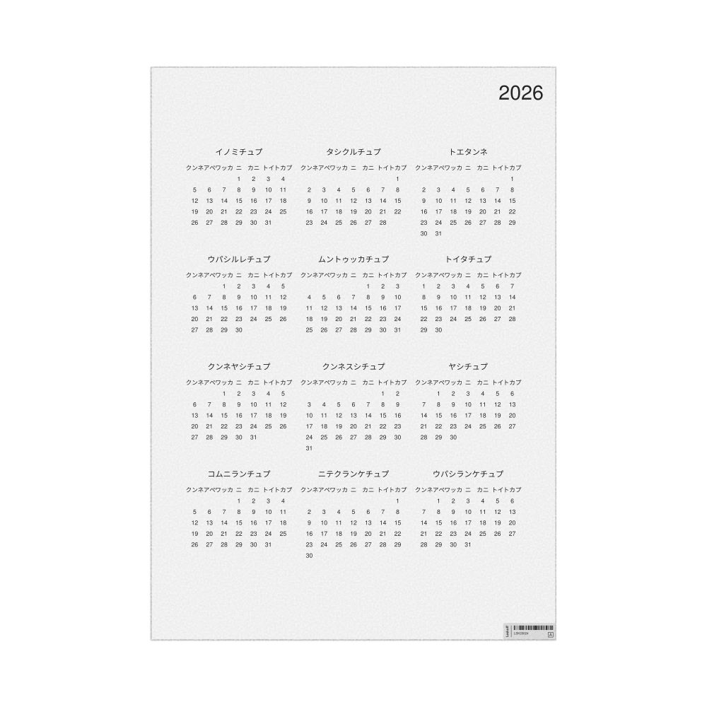 A 2026 wall calendar in Ainu. The calendar uses the Monday-start week format (common in the UK and Europe).