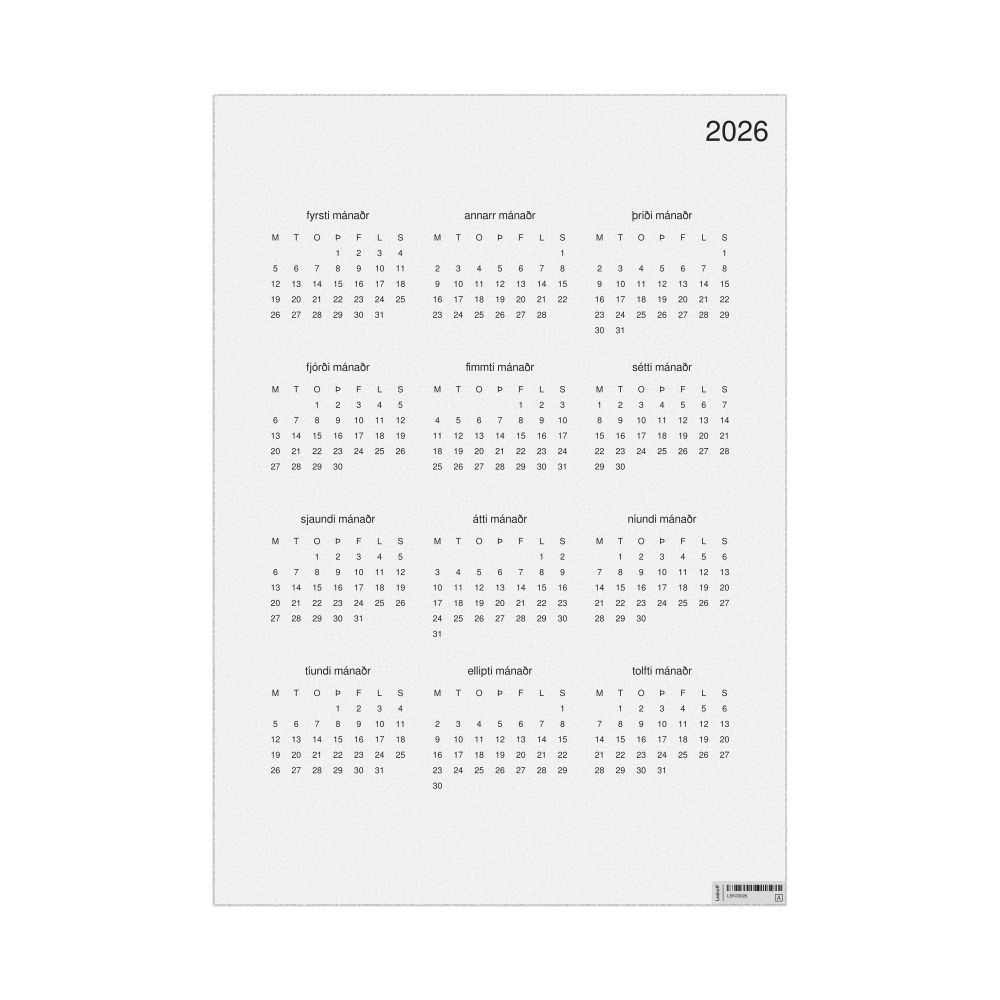 Leskoff 2026 Wall Calendar, Old Norse-Labeled, Monday-Start Layout, Poster / Wall Print, 23.4 x 33.1 in (59.4 x 84.1 cm), image 1 of 2