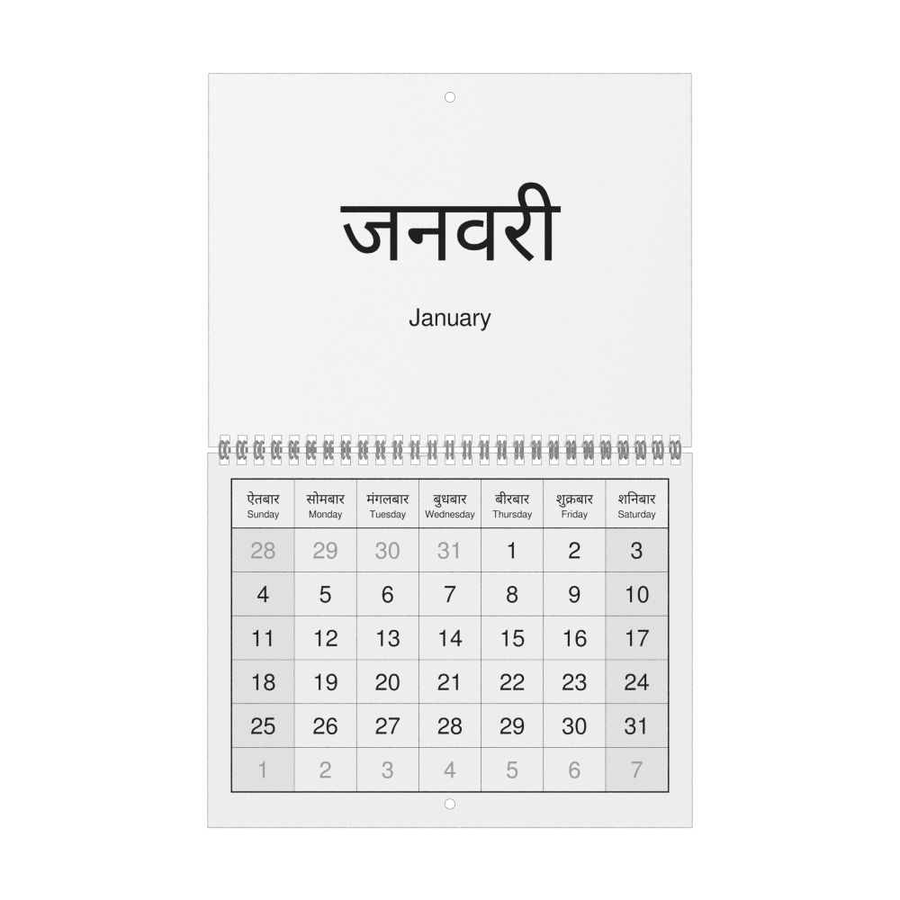 2026 Wall CalendarDogri/English-Labeled, Sunday-Start Layout, Wire-Bound, 11 x 8.5 in (27.9 x 21.6 cm)