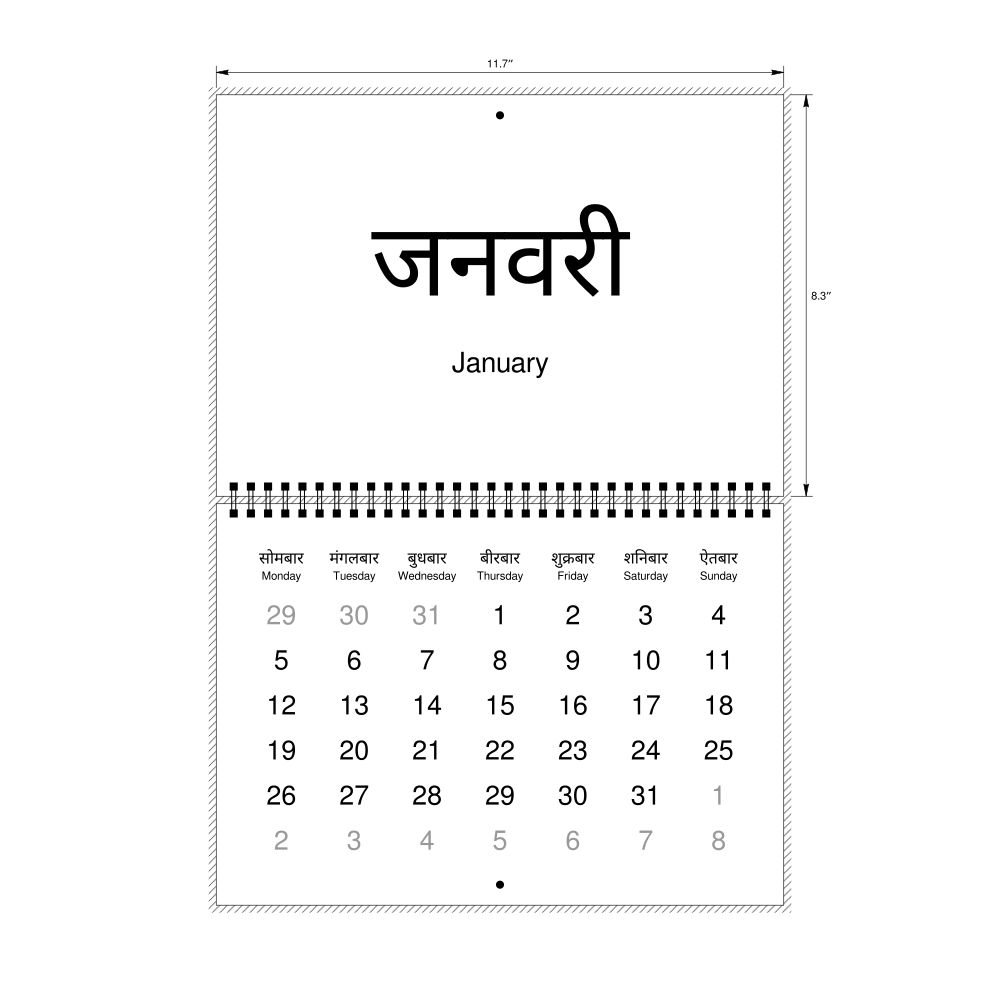2026 Wall CalendarDogri/English-Labeled, Monday-Start Layout, Wire-Bound, 11.7 x 8.3 in (29.7 x 21.0 cm)