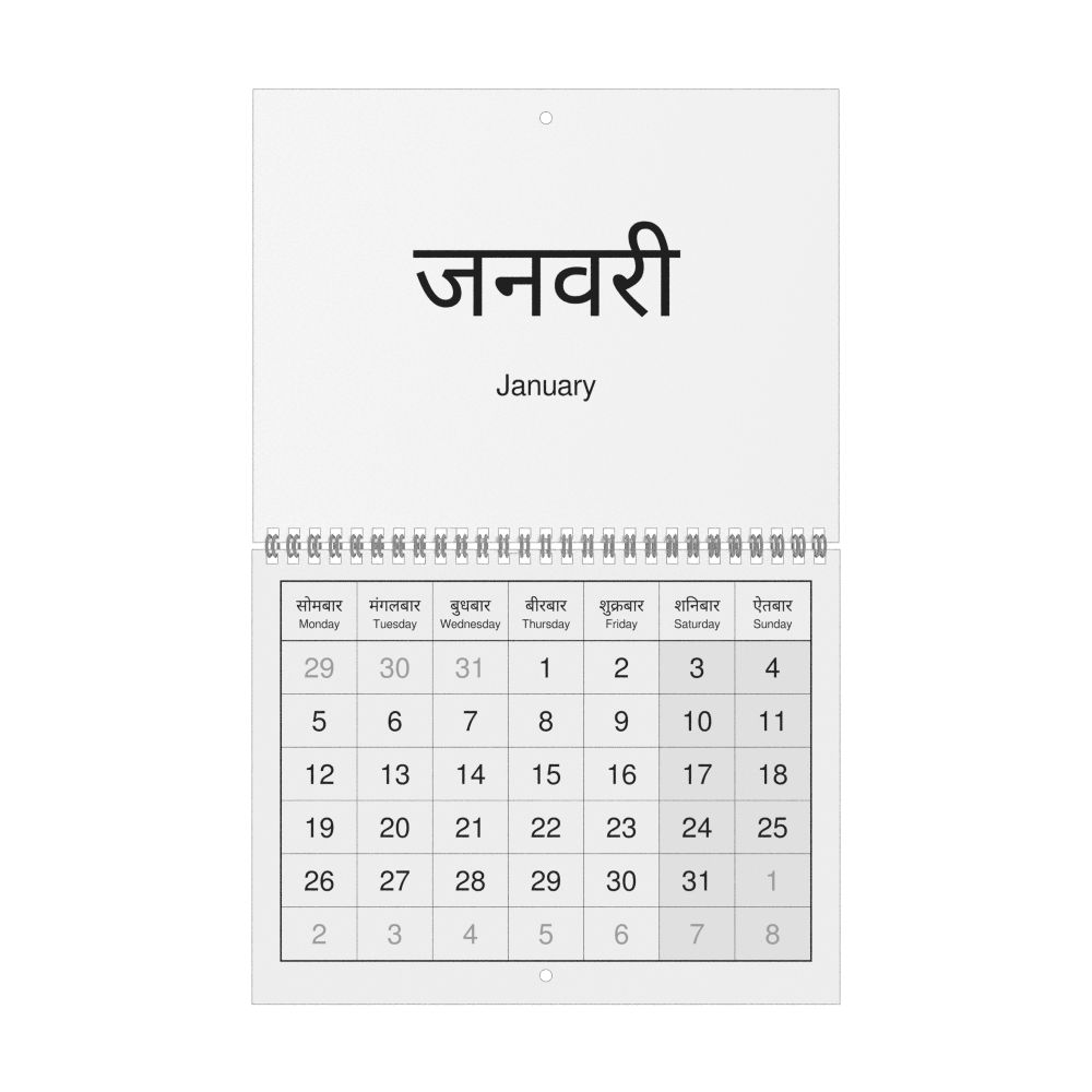 2026 Wall CalendarDogri/English-Labeled, Monday-Start Layout, Wire-Bound, 11 x 8.5 in (27.9 x 21.6 cm)