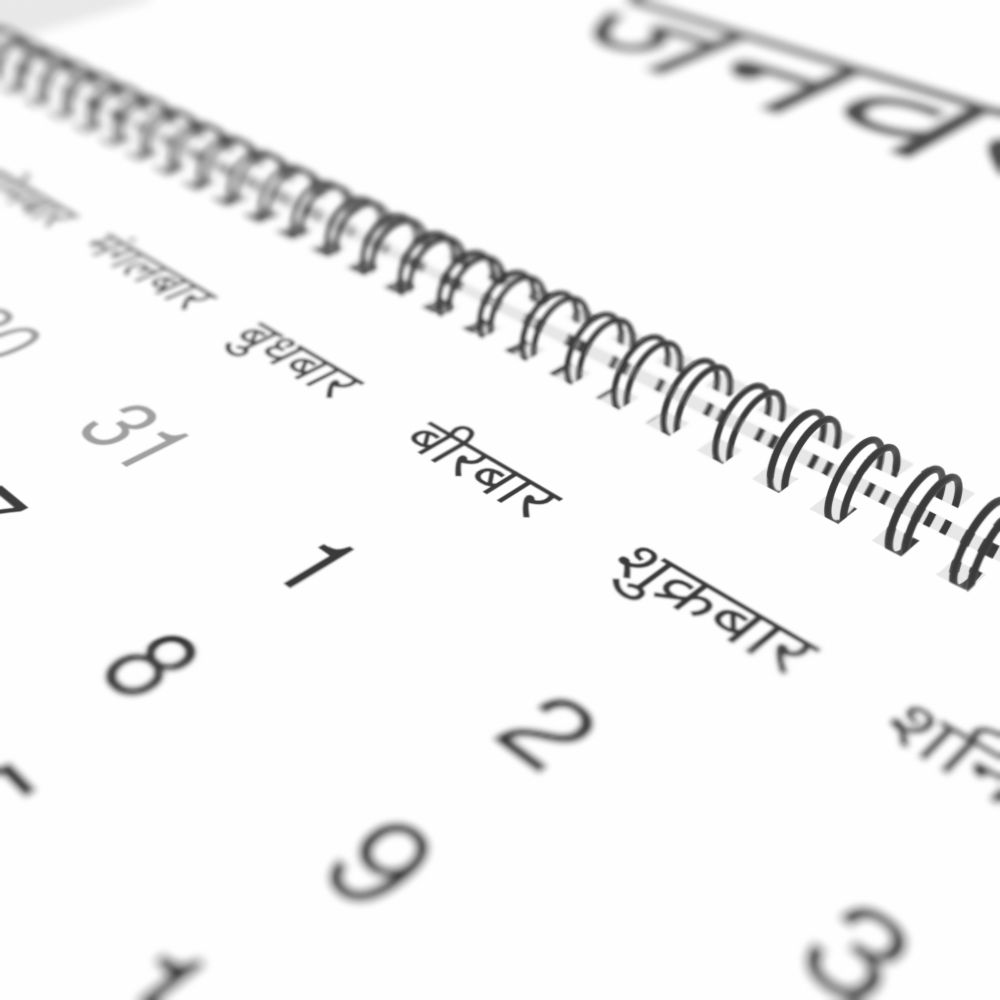 - Linguistics enthusiasts and polyglots - For "language geeks" interested in comparative linguistics or the mechanics of different languages and who value the aesthetic differences in scripts, orthography, and typography of different languages, the Dogri calendar serves as an object of intellectual interest. You can collect calendars for various languages to compare their linguistic roots (e.g., comparing Romance languages vs. Slavic languages). Leskoff's calendars are characterized by specific typographic choices that highlight the orthography and script unique to the target language. Think correct usage of diacritics, characters, and directional writing (left-to-right vs. right-to-left). The minimalist design focuses on legibility and aesthetic appeal of the script itself.