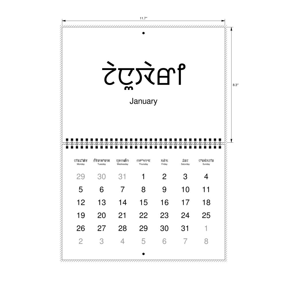 2026 Wall CalendarMeitei/English-Labeled, Monday-Start Layout, Wire-Bound, 11.7 x 8.3 in (29.7 x 21.0 cm)