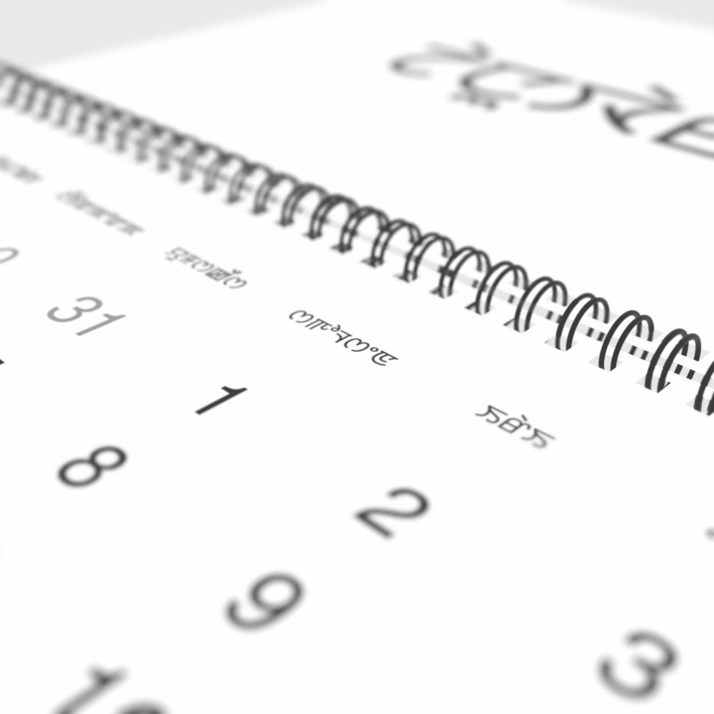 - Linguistics enthusiasts and polyglots - For "language geeks" interested in comparative linguistics or the mechanics of different languages and who value the aesthetic differences in scripts, orthography, and typography of different languages, the Meitei calendar serves as an object of intellectual interest. You can collect calendars for various languages to compare their linguistic roots (e.g., comparing Romance languages vs. Slavic languages). Leskoff's calendars are characterized by specific typographic choices that highlight the orthography and script unique to the target language. Think correct usage of diacritics, characters, and directional writing (left-to-right vs. right-to-left). The minimalist design focuses on legibility and aesthetic appeal of the script itself.