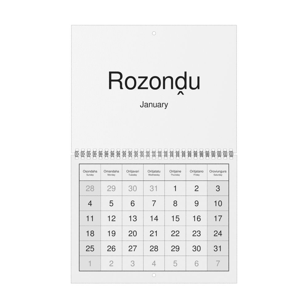 2026 Wall CalendarHerero/English-Labeled, Sunday-Start Layout, Wire-Bound, 11 x 8.5 in (27.9 x 21.6 cm)