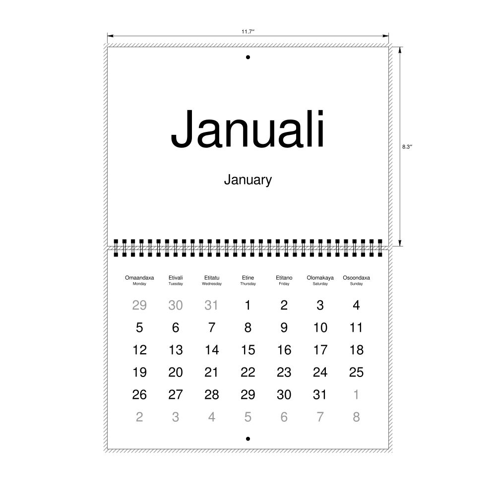 2026 Wall CalendarKwanyama/English-Labeled, Monday-Start Layout, Wire-Bound, 11.7 x 8.3 in (29.7 x 21.0 cm)