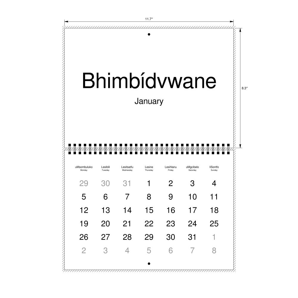 2027 Wall Calendar, Swazi/English-Labeled, Sunday-Start Layout, Wire-Bound, 11.7 x 8.3 in (29.7 x 21.0 cm)