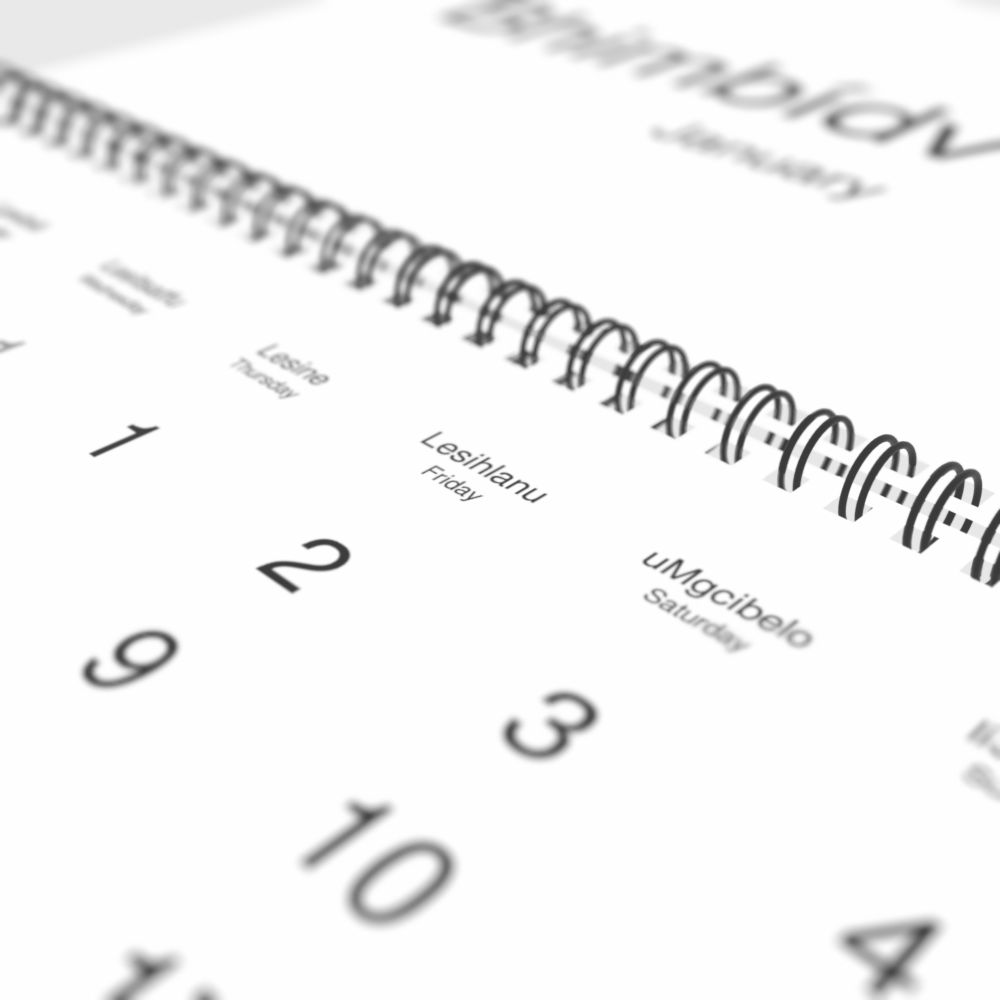 2026 Wall CalendarSwazi/English-Labeled, Monday-Start Layout, Wire-Bound, 11.7 x 8.3 in (29.7 x 21.0 cm)