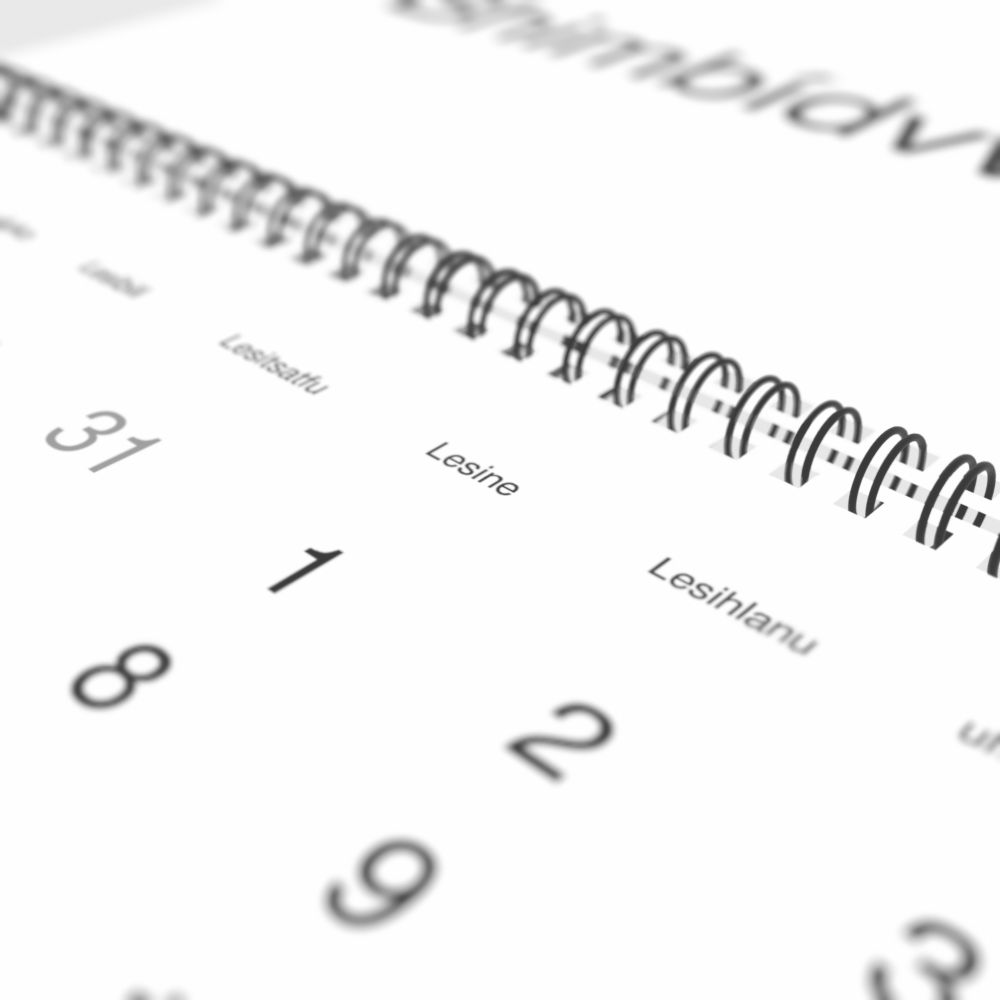 - Linguistics enthusiasts and polyglots - For "language geeks" interested in comparative linguistics or the mechanics of different languages and who value the aesthetic differences in scripts, orthography, and typography of different languages, the Swazi calendar serves as an object of intellectual interest. You can collect calendars for various languages to compare their linguistic roots (e.g., comparing Romance languages vs. Slavic languages). Leskoff's calendars are characterized by specific typographic choices that highlight the orthography and script unique to the target language. Think correct usage of diacritics, characters, and directional writing (left-to-right vs. right-to-left). The minimalist design focuses on legibility and aesthetic appeal of the script itself.