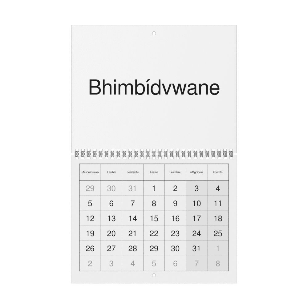 This calendar features the Swazi names of months and days of the week on top of a standard Gregorian calendar layout. Beyond its utility for tracking dates, it serves as an educational tool, cultural touchstone (cultural artifact), and functional decor (aesthetic object).