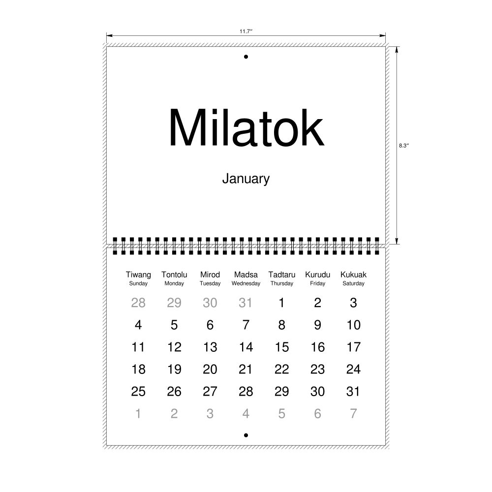 2027 Wall Calendar, Dusun-Labeled, Monday-Start Layout, Wire-Bound, 11.7 x 8.3 in (29.7 x 21.0 cm)