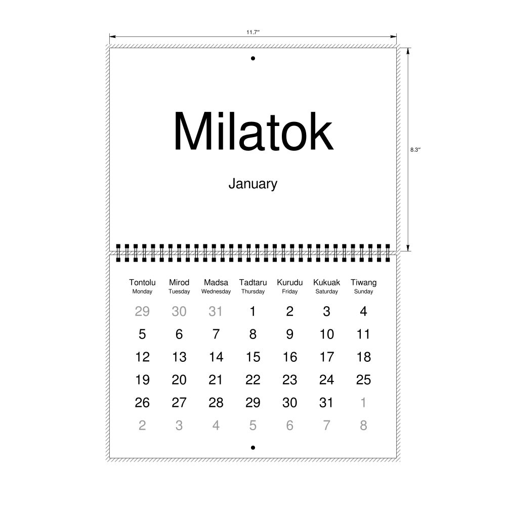 2026 Wall Calendar, Dusun-Labeled, Monday-Start Layout, Poster / Wall Print, 23.4 x 33.1 in (59.4 x 84.1 cm)