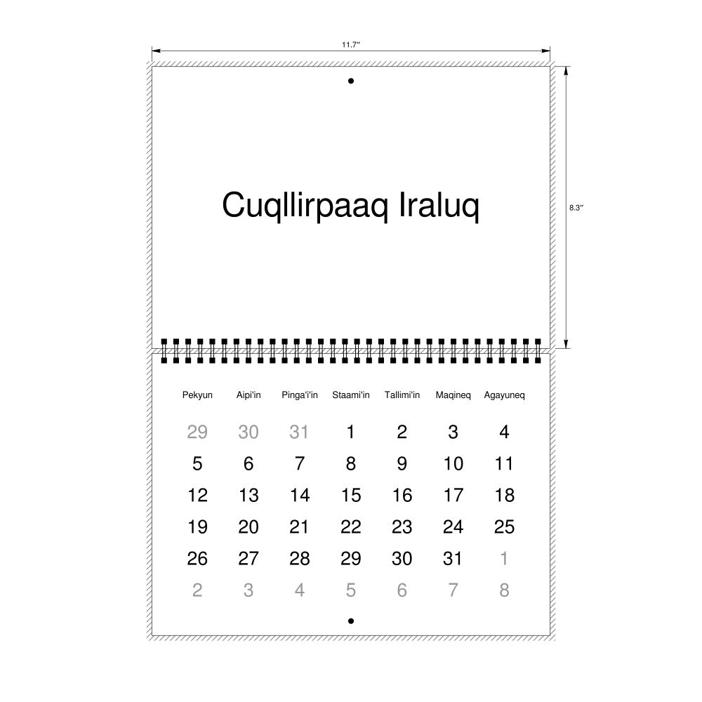 - Alutiiq speakers and enthusiasts - Choose this calendar if you are looking for a simple, localized calendar in the Alutiiq language. Use it in your home, office, or classroom as a regular calendar.