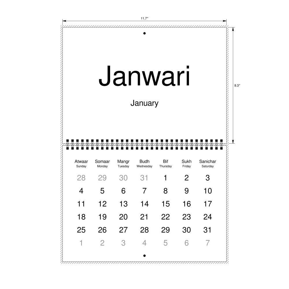 2026 Wall CalendarFiji Hindi/English-Labeled, Sunday-Start Layout, Wire-Bound, 11.7 x 8.3 in (29.7 x 21.0 cm)