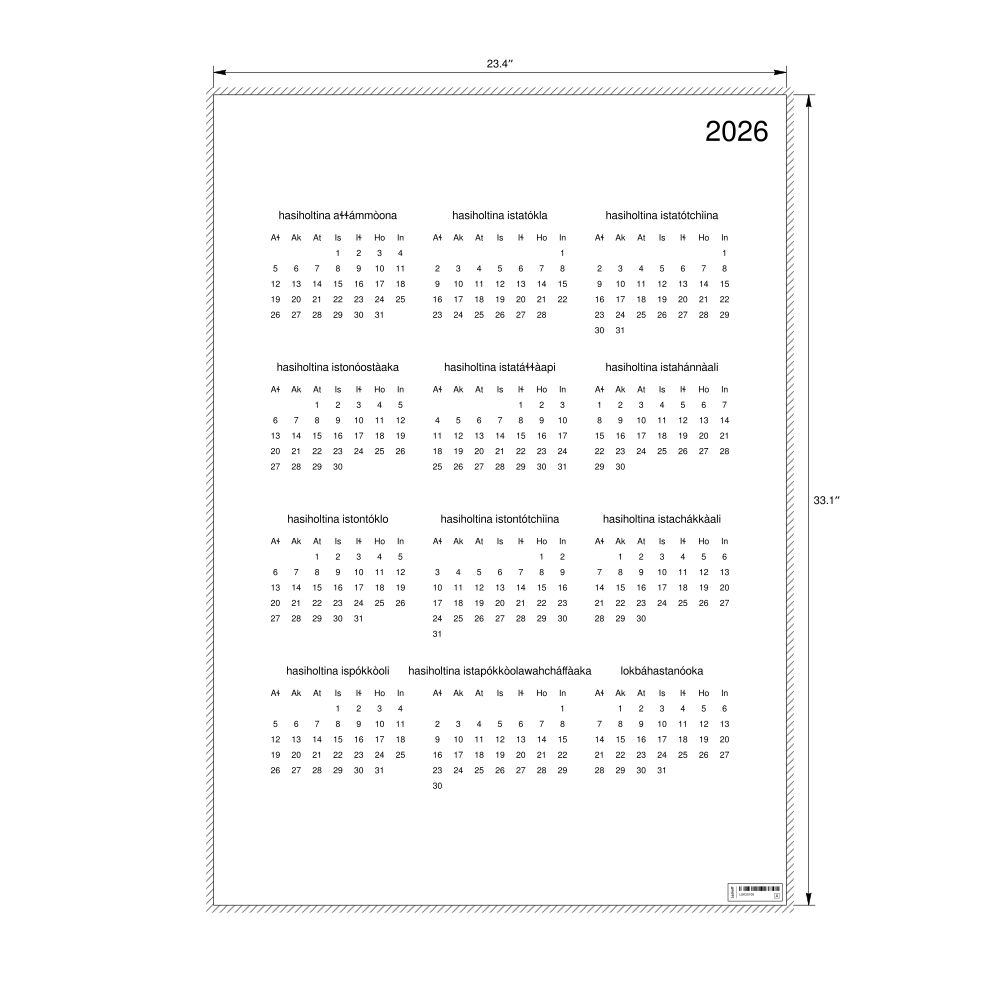 • Alabama heritage speakers and cultural connectors - For individuals seeking to maintain a connection to their history, ancestral roots, or the culture associated with the Alabama language, the calendar serves as a daily cultural marker. Use it in your home, office, library, or museum as a link to linguistic and cultural identity that integrates Alabama into your everyday life. Familiar language script and naming conventions may also provide a sense of home in a foreign environment.