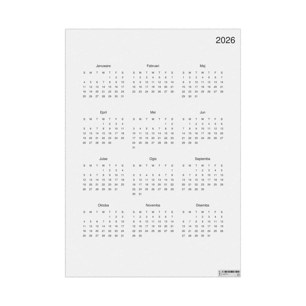 Leskoff 2026 Wall Calendar, Bislama-Labeled, Sunday-Start Layout, Poster / Wall Print, 23.4 x 33.1 in (59.4 x 84.1 cm), image 1 of 2
