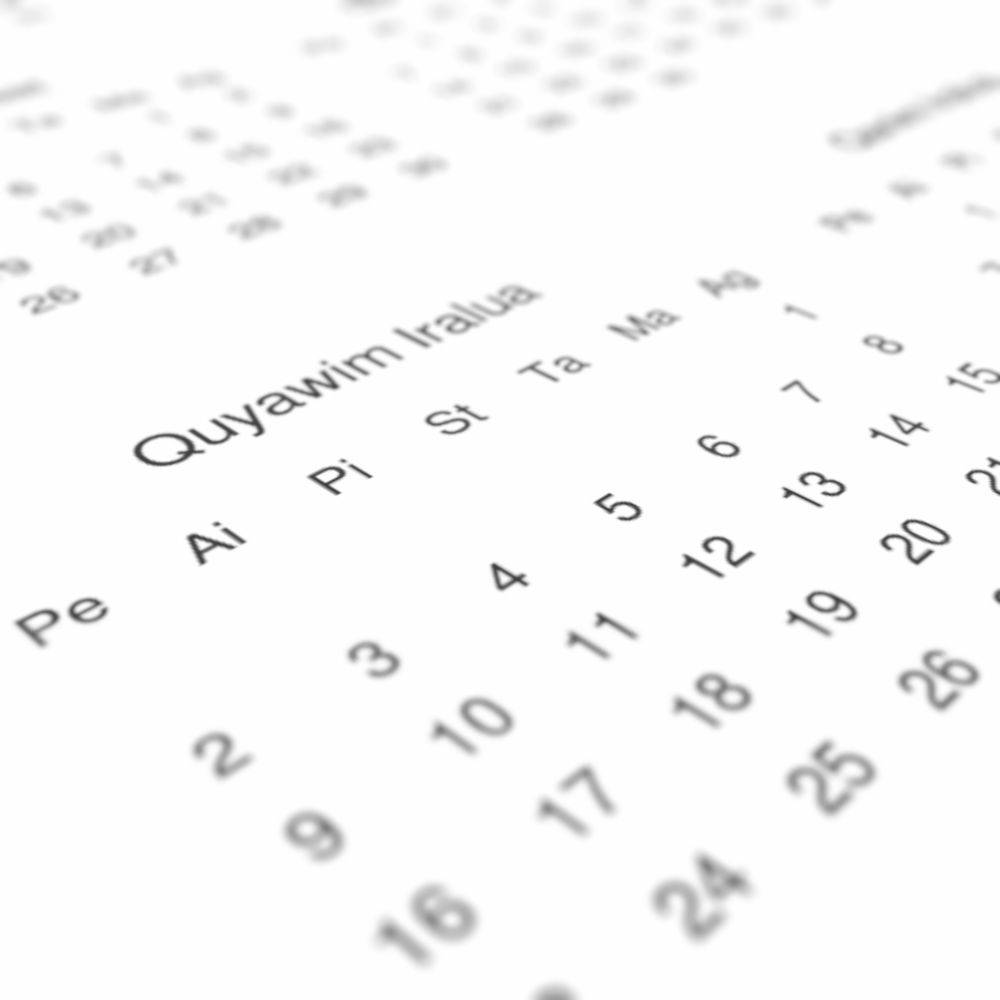 • Alutiiq heritage speakers and cultural connectors - For individuals seeking to maintain a connection to their history, ancestral roots, or the culture associated with the Alutiiq language, the calendar serves as a daily cultural marker. Use it in your home, office, library, or museum as a link to linguistic and cultural identity that integrates Alutiiq into your everyday life. Familiar language script and naming conventions may also provide a sense of home in a foreign environment.