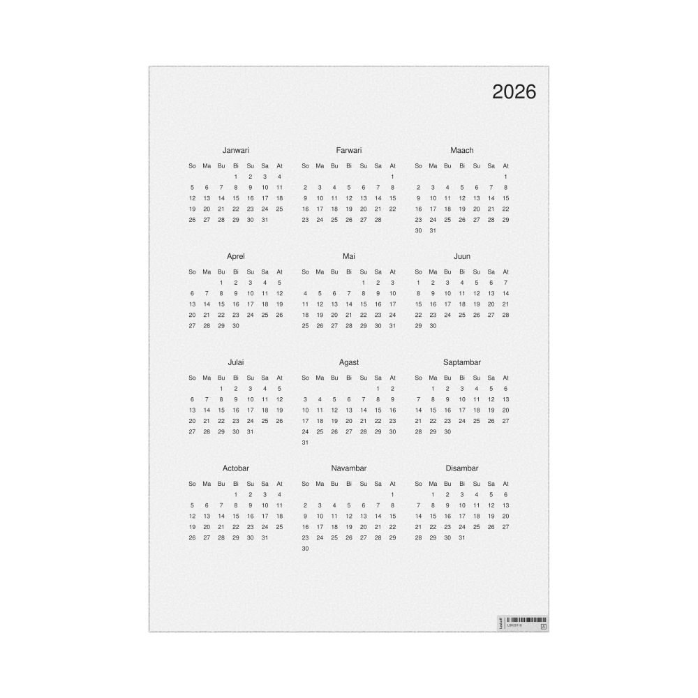 • Linguistics enthusiasts and polyglots - For "language geeks" interested in comparative linguistics or the mechanics of different languages and who value the aesthetic differences in scripts, orthography, and typography of different languages, the Fiji Hindi calendar serves as an object of intellectual interest. You can collect calendars for various languages to compare their linguistic roots (e.g., comparing Romance languages vs. Slavic languages). Leskoff's calendars are characterized by specific typographic choices that highlight the orthography and script unique to the target language. Think correct usage of diacritics, characters, and directional writing (left-to-right vs. right-to-left). The minimalist design focuses on legibility and aesthetic appeal of the script itself.