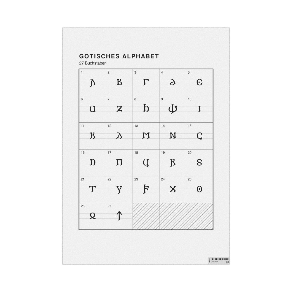 The Gothic alphabet chart (the full set of letters) labeled in German (Gotisches Alphabet) in the 23.4 x 33.1 in (59.4 x 84.1 cm, poster / wall chart) format.