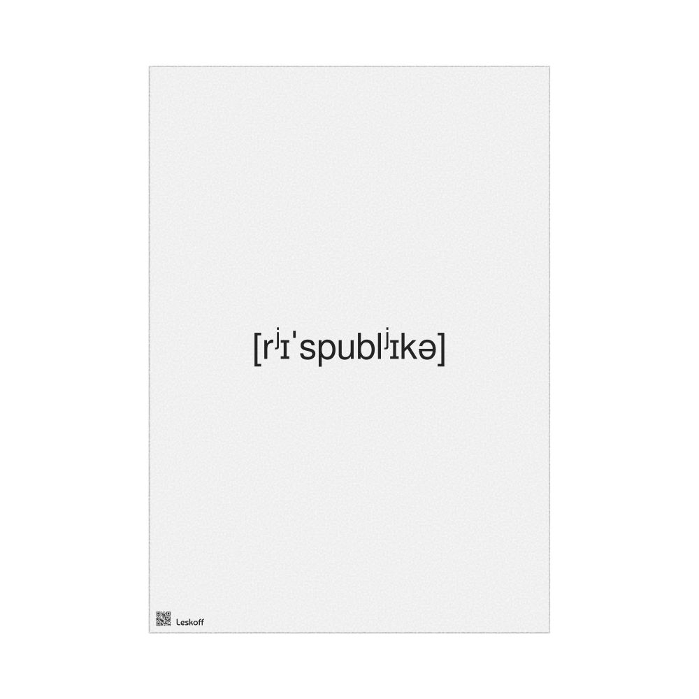 A poster featuring the phonetic transcription of республика in the International Phonetic Alphabet (IPA).