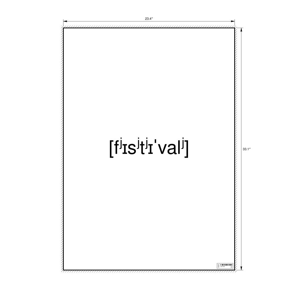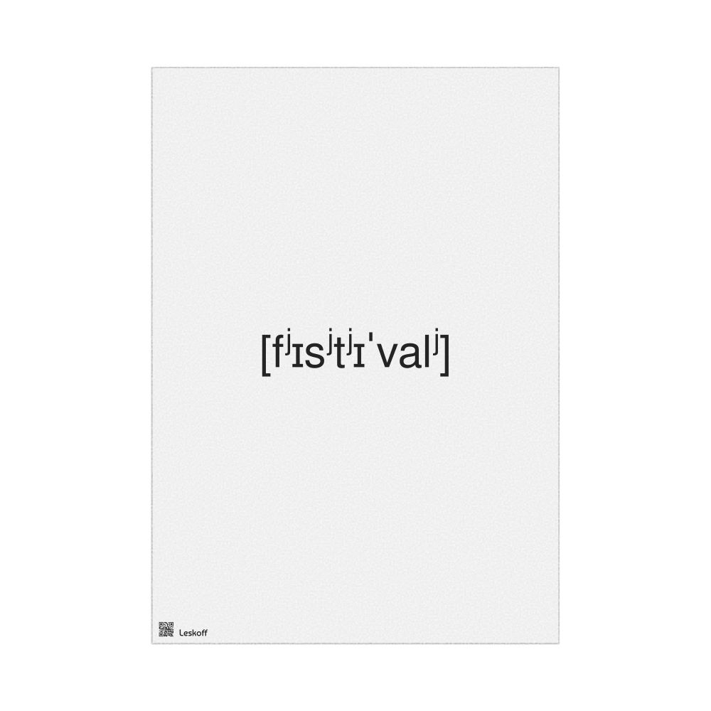 A poster featuring the phonetic transcription of фестиваль in the International Phonetic Alphabet (IPA).