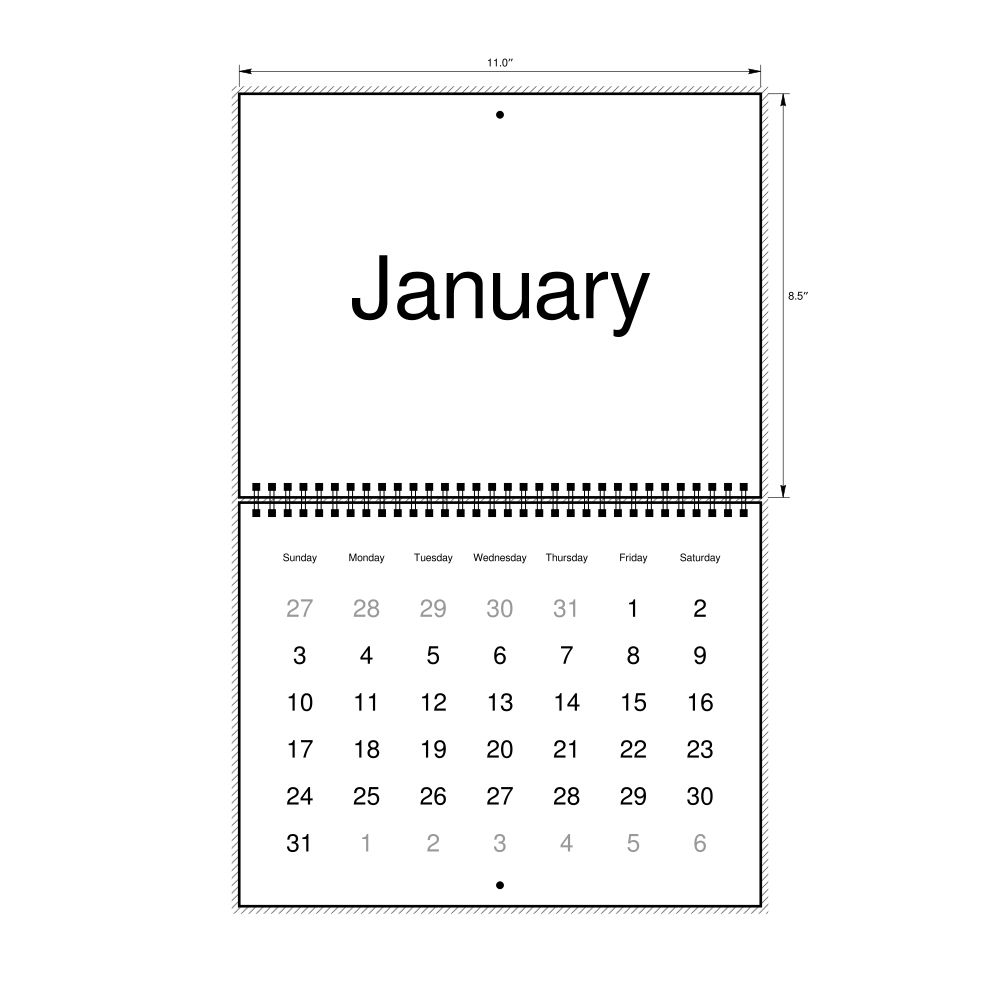 2027 Wall CalendarEnglish-Labeled, Sunday-Start Layout, Wire-Bound, 11 x 8.5 in (27.9 x 21.6 cm)
