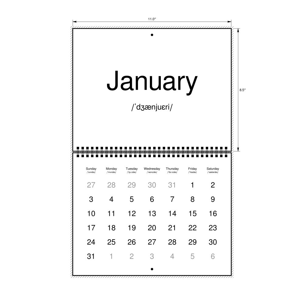 2027 Phonetic Wall CalendarEnglish-Labeled with IPA, Sunday-Start Layout, Wire-Bound, 11 x 8.5 in (27.9 x 21.6 cm)