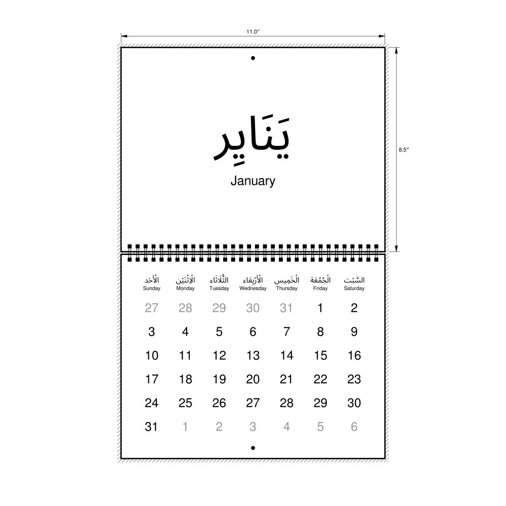2027 Wall CalendarArabic/English-Labeled, Sunday-Start Layout, Wire-Bound, 11 x 8.5 in (27.9 x 21.6 cm)