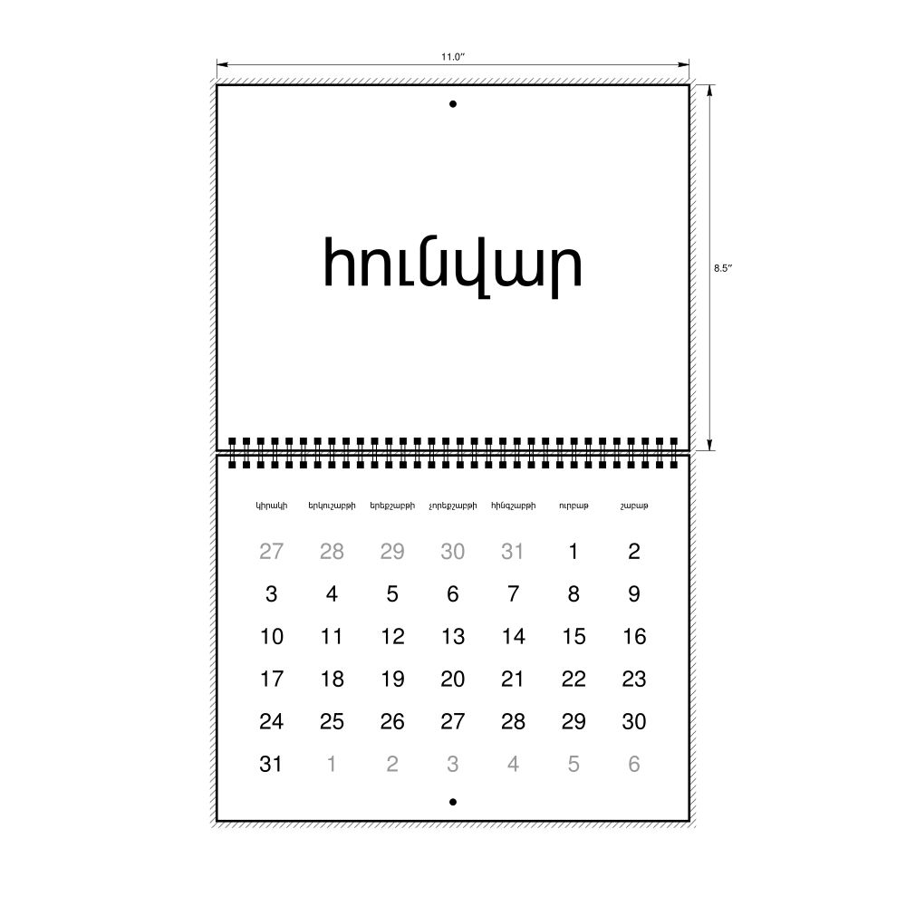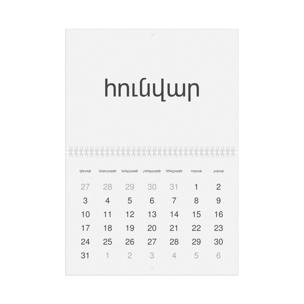 - Armenian heritage speakers and cultural connectors - For individuals seeking to maintain a connection to their history, ancestral roots, or the culture associated with the Armenian language, the calendar serves as a daily cultural marker. Use it in your home, office, library, or museum as a link to linguistic and cultural identity that integrates Armenian into your everyday life. Familiar language script and naming conventions may also provide a sense of home in a foreign environment.