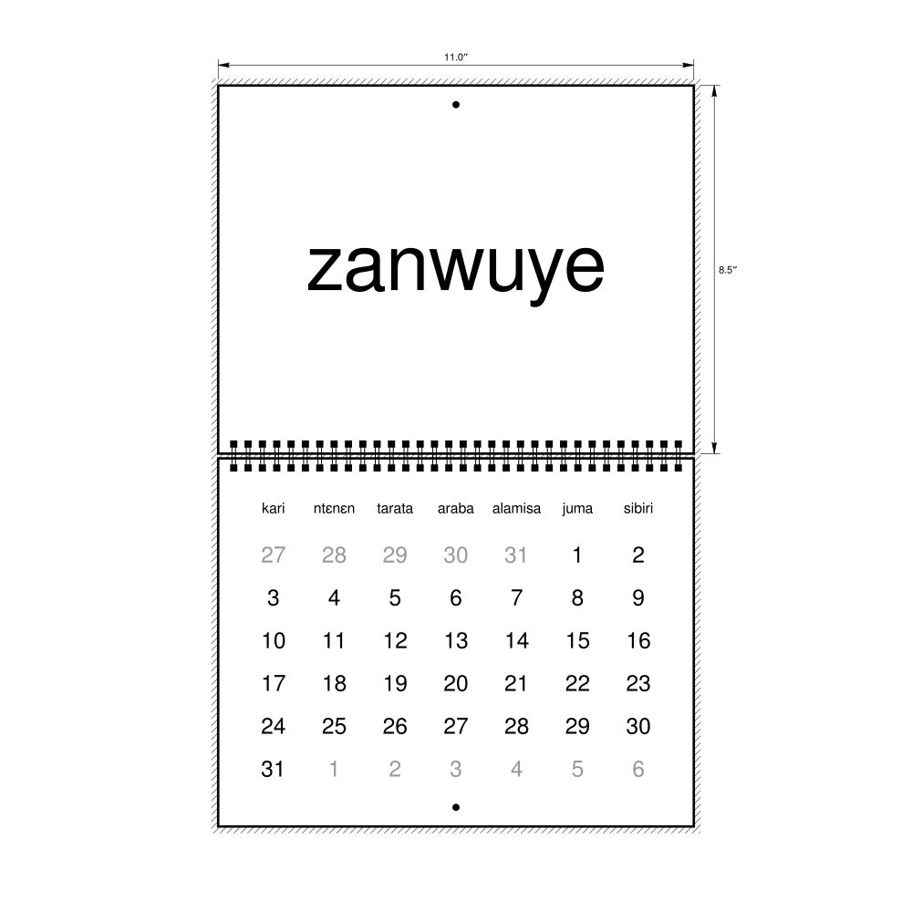2027 Wall Calendar, Bambara-Labeled, Sunday-Start Layout, Wire-Bound, 11 x 8.5 in (27.9 x 21.6 cm)