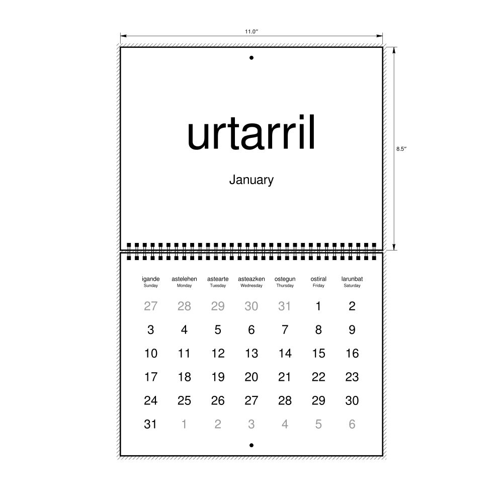 2027 Wall CalendarBasque/English-Labeled, Sunday-Start Layout, Wire-Bound, 11 x 8.5 in (27.9 x 21.6 cm)