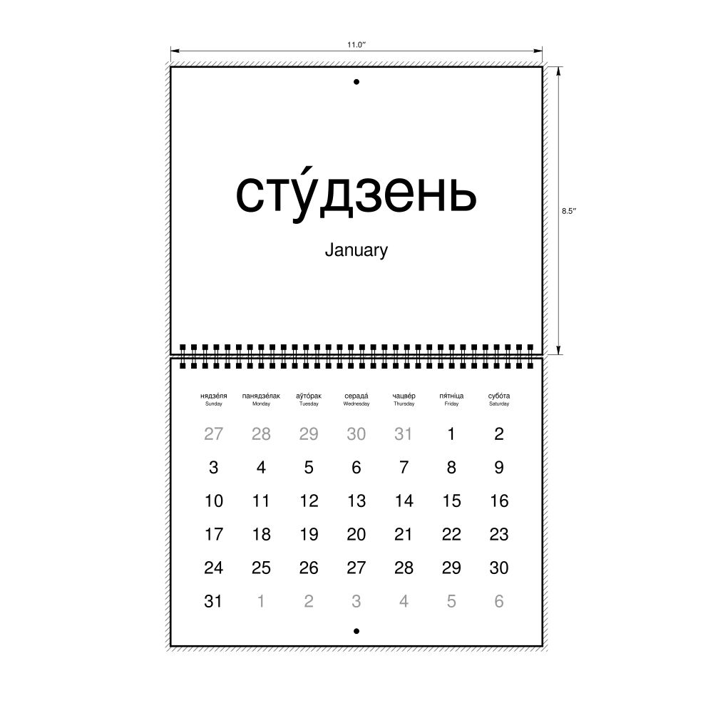 2027 Wall CalendarBelarusian/English-Labeled, Sunday-Start Layout, Wire-Bound, 11 x 8.5 in (27.9 x 21.6 cm)