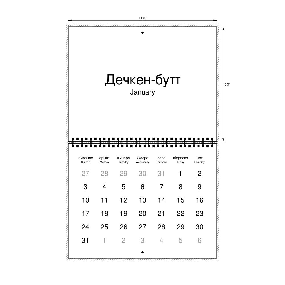 2027 Wall Calendar, Chechen-Labeled, Monday-Start Layout, Wire-Bound, 11 x 8.5 in (27.9 x 21.6 cm)