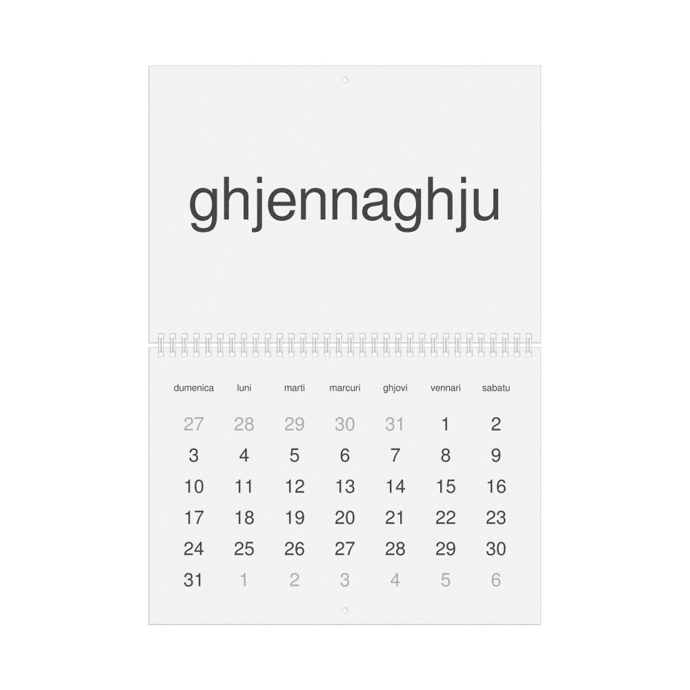 • Linguistics enthusiasts and polyglots - For "language geeks" interested in comparative linguistics or the mechanics of different languages and who value the aesthetic differences in scripts, orthography, and typography of different languages, the Corsican calendar serves as an object of intellectual interest. You can collect calendars for various languages to compare their linguistic roots (e.g., comparing Romance languages vs. Slavic languages). Leskoff's calendars are characterized by specific typographic choices that highlight the orthography and script unique to the target language. Think correct usage of diacritics, characters, and directional writing (left-to-right vs. right-to-left). The minimalist design focuses on legibility and aesthetic appeal of the script itself.