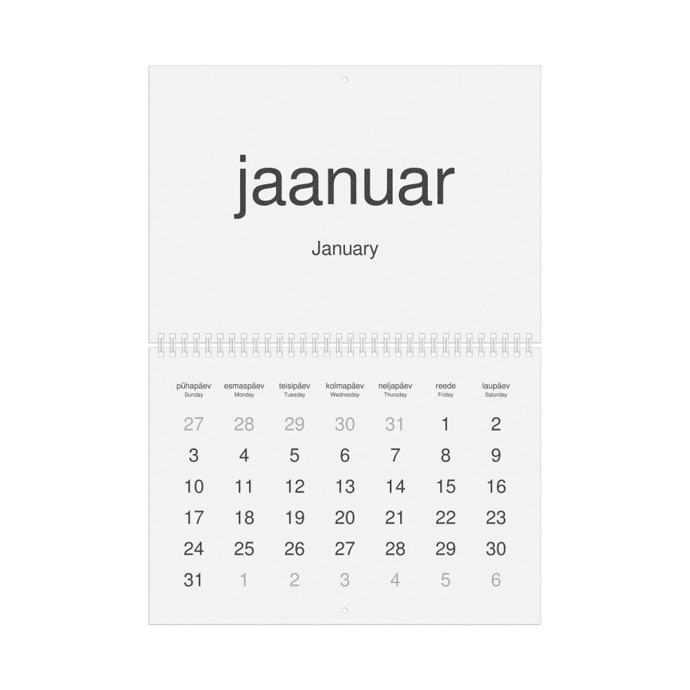 2027 Wall Calendar, Estonian/English-Labeled, Monday-Start Layout, Wire-Bound, 11.7 x 8.3 in (29.7 x 21.0 cm)