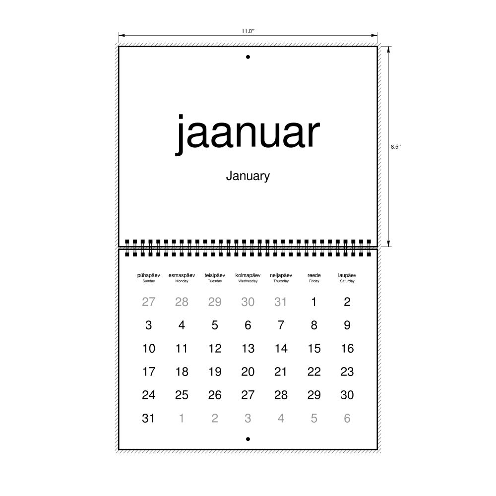 2027 Wall CalendarEstonian/English-Labeled, Sunday-Start Layout, Wire-Bound, 11 x 8.5 in (27.9 x 21.6 cm)