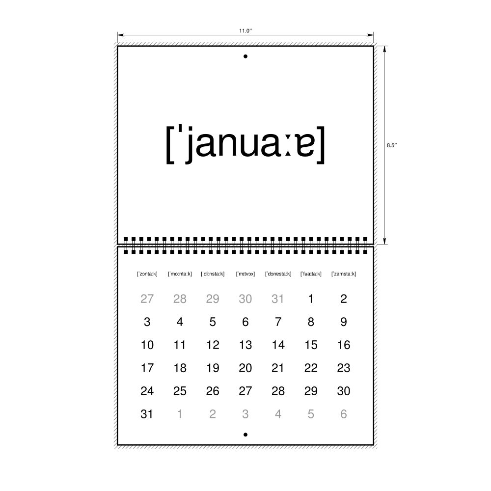 2027 Phonetic Wall CalendarIPA-Labeled (German), Sunday-Start Layout, Wire-Bound, 11 x 8.5 in (27.9 x 21.6 cm)