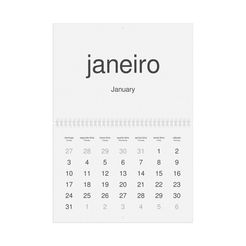 2027 Wall Calendar, Portuguese-Labeled, Monday-Start Layout, Wire-Bound, 11.7 x 8.3 in (29.7 x 21.0 cm)