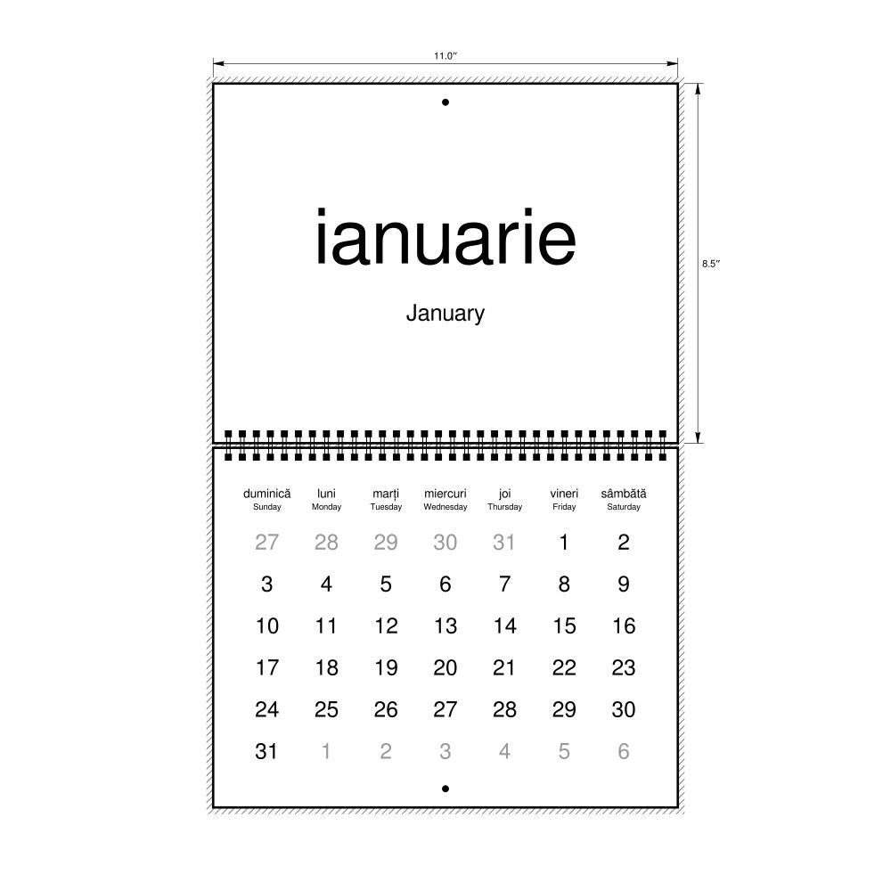 2027 Wall CalendarRomanian/English-Labeled, Sunday-Start Layout, Wire-Bound, 11 x 8.5 in (27.9 x 21.6 cm)
