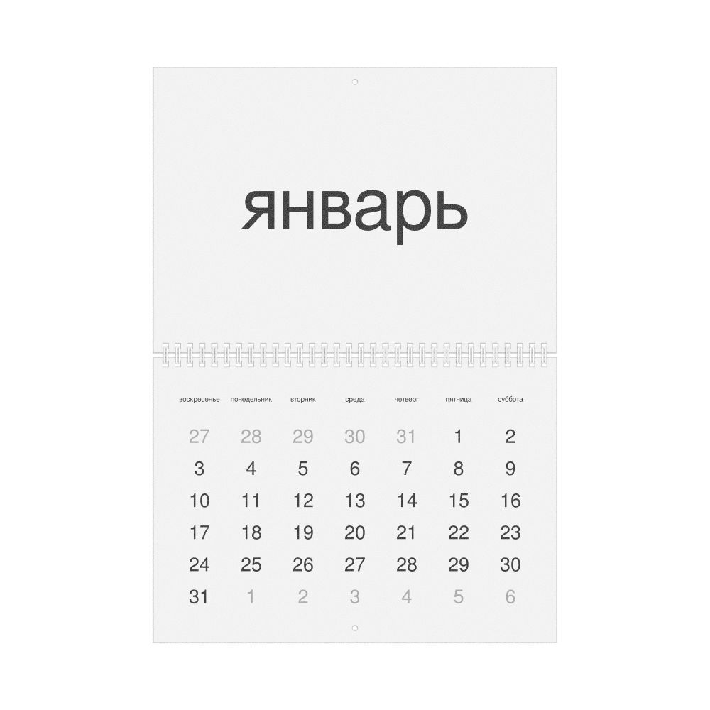 • Linguistics enthusiasts and polyglots - For "language geeks" interested in comparative linguistics or the mechanics of different languages and who value the aesthetic differences in scripts, orthography, and typography of different languages, the Russian calendar serves as an object of intellectual interest. You can collect calendars for various languages to compare their linguistic roots (e.g., comparing Romance languages vs. Slavic languages). Leskoff's calendars are characterized by specific typographic choices that highlight the orthography and script unique to the target language. Think correct usage of diacritics, characters, and directional writing (left-to-right vs. right-to-left). The minimalist design focuses on legibility and aesthetic appeal of the script itself.