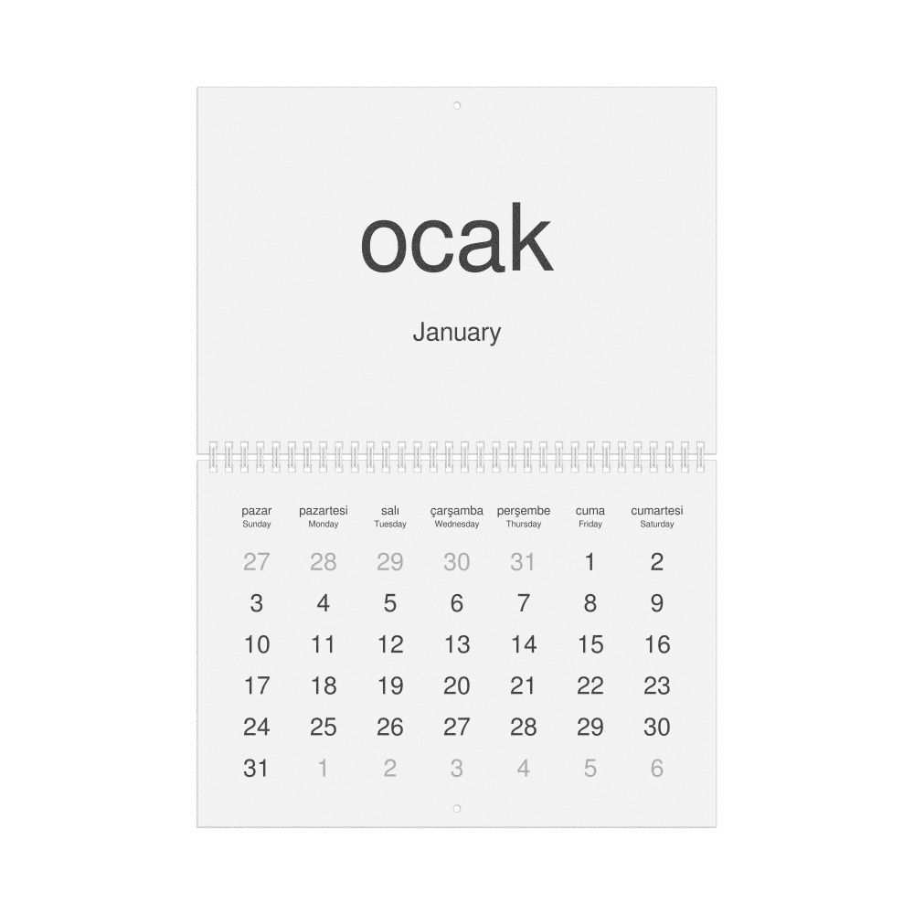 2027 Wall Calendar, Turkish/English-Labeled, Monday-Start Layout, Wire-Bound, 11.7 x 8.3 in (29.7 x 21.0 cm)