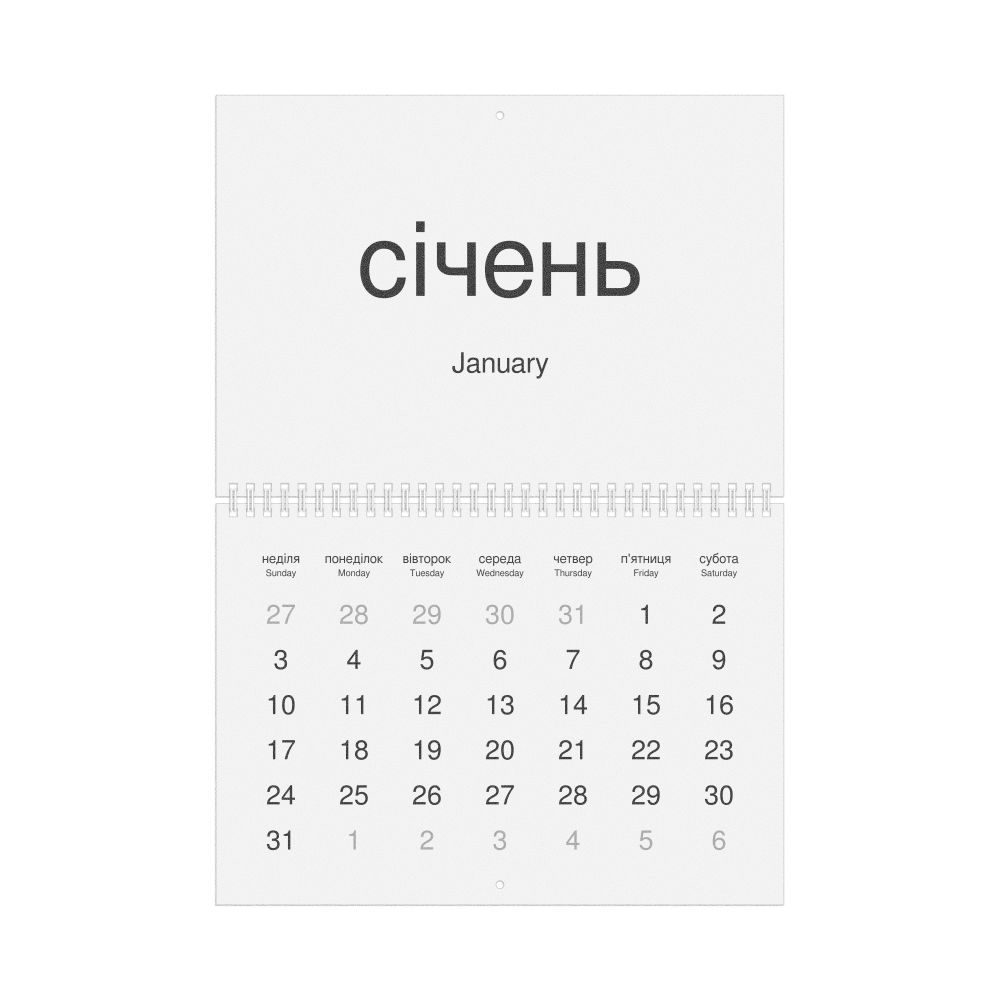 2027 Wall Calendar, Ukrainian-Labeled, Monday-Start Layout, Wire-Bound, 11.7 x 8.3 in (29.7 x 21.0 cm)