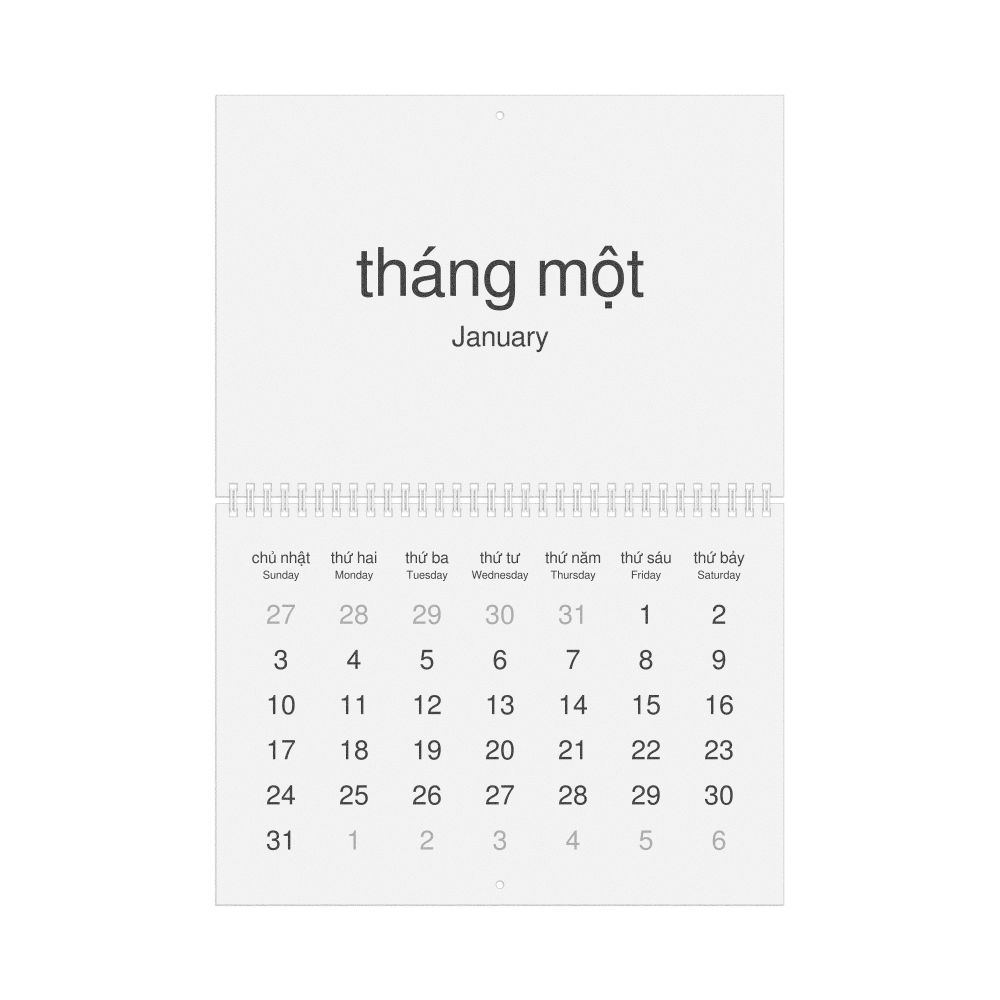 2027 Wall Calendar, Vietnamese-Labeled, Sunday-Start Layout, Wire-Bound, 11.7 x 8.3 in (29.7 x 21.0 cm)
